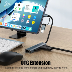 Es un accesorio que combina varias funciones en un solo equipo. Permite conectar tu computadora o laptop a redes cableadas mediante un puerto RJ45 Gigabit para transferencias de hasta 1000 Mbps, además de expandir la conectividad USB a través de puertos USB 3.0 y Tipo-C. Funciona también como HUB para múltiples periféricos, facilitando la conexión de dispositivos como memorias, teclados, ratones y discos duros externos. Es ideal para laptops modernas, ofreciendo una solución compacta y versátil para trabajo, oficina o entretenimiento.