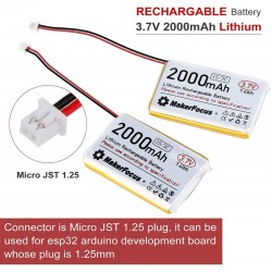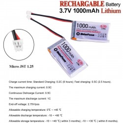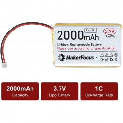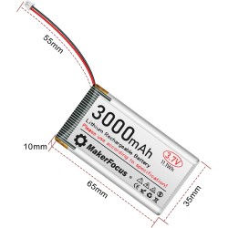 Una batería tipo LiPo (polímero de litio) recargable de 3.7V y 3000mAh es una fuente de energía compacta y ligera, ampliamente utilizada en dispositivos electrónicos portátiles, como drones, cámaras, juguetes, y otros equipos que requieren una alta densidad de energía y un peso reducido.