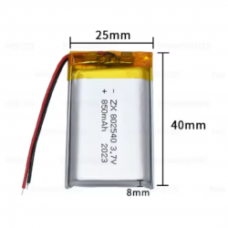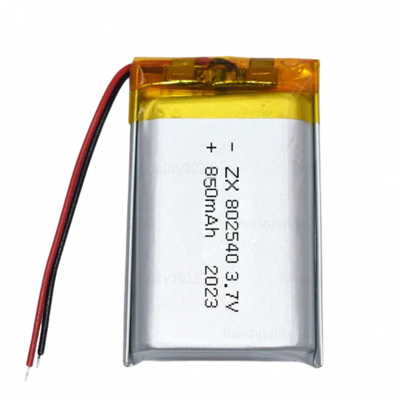 Es una batería recargable de polímero de litio (LiPo) de una sola celda, con voltaje nominal de 3.7 V y capacidad de 850 mAh. Se utiliza en dispositivos portátiles, proyectos electrónicos, módulos IoT, drones pequeños, juguetes eléctricos y equipos que requieren buena densidad de energía en un formato compacto y ligero.