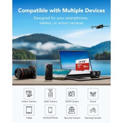 La memoria microSD Lexar de 32 GB es una tarjeta de memoria flash diseñada para dispositivos que admiten este formato de almacenamiento, como teléfonos inteligentes, cámaras digitales, tabletas, consolas de videojuegos y otros dispositivos electrónicos. Lexar es una marca reconocida por sus productos de almacenamiento confiables y de alta calidad.