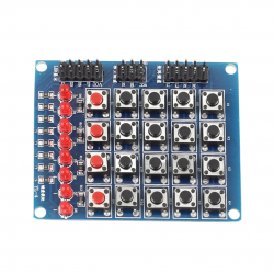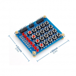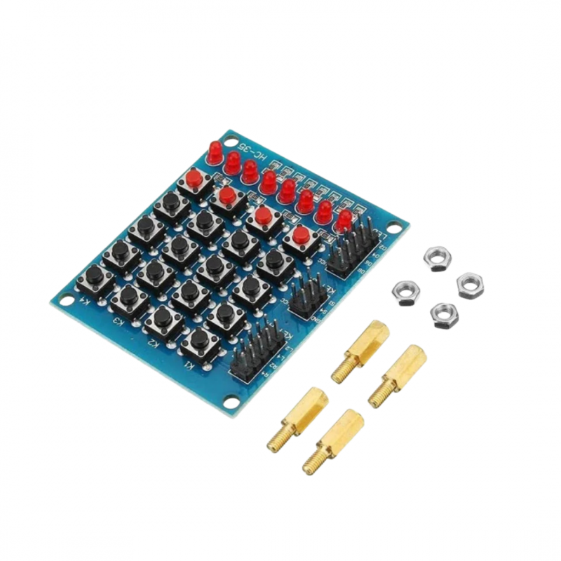 Es un teclado compuesto por 16 botones organizados en una matriz de 4 filas y 4 columnas. Cada botón representa una combinación única de fila y columna, lo que permite leer las pulsaciones usando solo 8 pines del microcontrolador (4 para filas y 4 para columnas).