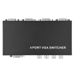 Un Switch VGA de 4 puertos es un dispositivo que permite conectar hasta cuatro equipos con salida VGA (computadoras, laptops, DVR, etc.) a un mismo monitor o proyector, y seleccionar cuál de ellos mostrar en pantalla. Facilita el uso de varias fuentes de video sin necesidad de estar conectando y desconectando cables, ideal para oficinas, aulas, puntos de monitoreo y entornos donde se requieren múltiples equipos visualizados en una sola pantalla.