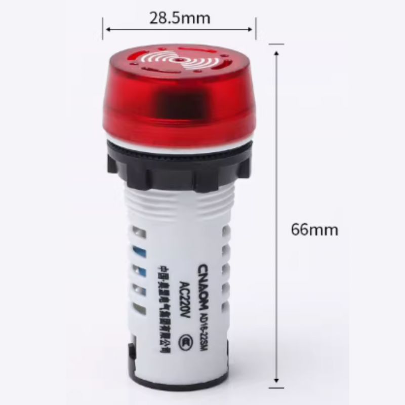 Es un dispositivo de señalización acústica y visual. Combina un buzzer (zumbador) que emite un sonido de advertencia con una luz piloto intermitente, utilizada para alertar sobre fallos, alarmas o estados operativos de una máquina o sistema.