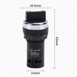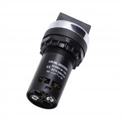Es un interruptor selector rotativo de 3 posiciones (o 2 posiciones según el modelo) que permite el control manual de dispositivos eléctricos o maquinaria. Se activa girando el pomo o perilla.