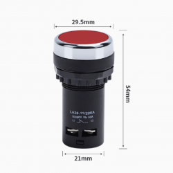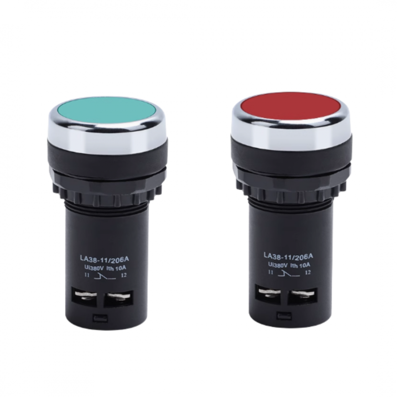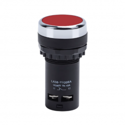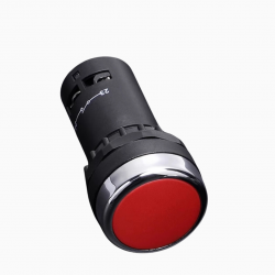 Es un botón pulsador momentáneo de tipo industrial, diseñado para el montaje en tableros o cajas de control con orificios de 22 mm de diámetro. Al presionarse, cambia el estado de sus contactos (abre o cierra el circuito) y al soltarlo, vuelve automáticamente a su posición original (auto-reajuste).