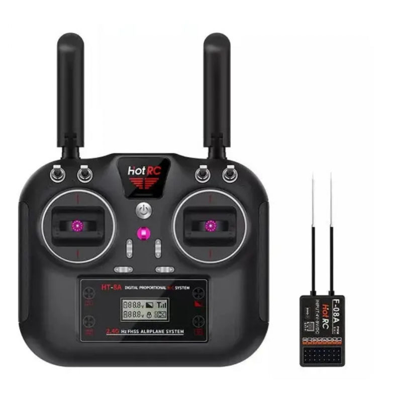El Hotrc HT-8A es un módulo transmisor de 2.4GHz y 8 canales diseñado para aplicaciones de control remoto (RC). Es ideal para aficionados y profesionales que buscan un sistema de control versátil y confiable para sus proyectos de vehículos, drones, barcos, y otros dispositivos RC.