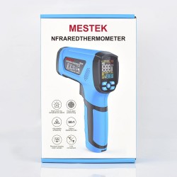El MESTEK IR05 es un termómetro infrarrojo digital profesional diseñado para medir temperaturas de manera rápida, precisa y segura en diferentes aplicaciones domésticas e industriales. Ofrece dos formas de medición: sin contacto mediante láser para superficies y con sonda tipo K para temperatura interna.