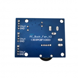 Es un módulo electrónico que permite controlar la velocidad de hasta tres ventiladores de manera independiente, reduciendo el voltaje de entrada mediante un convertidor DC-DC step-down (también llamado buck converter).