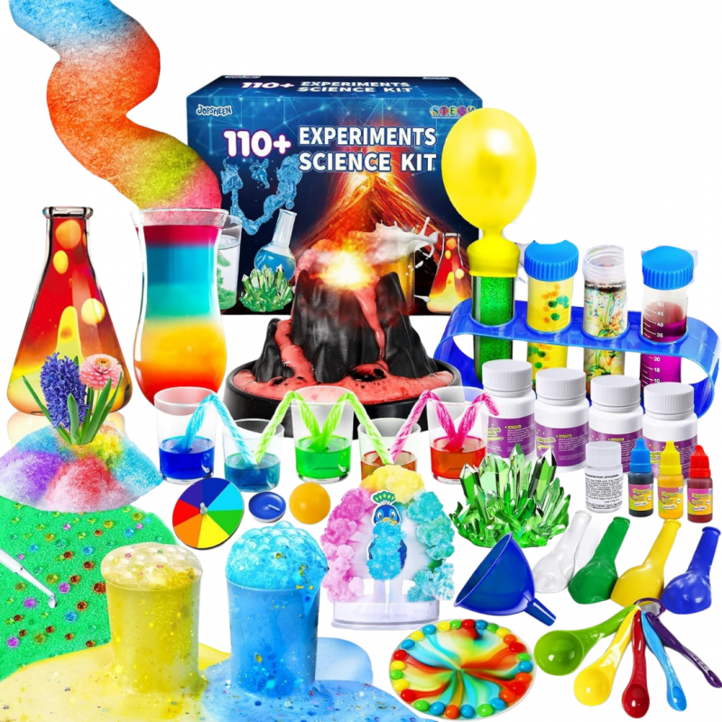 "Experimentos de Ciencia 110+ Jopsheen" es un kit educativo diseñado para niños y jóvenes, que permite realizar más de 110 experimentos científicos de forma práctica y divertida. Está orientado a fomentar la curiosidad, el pensamiento crítico y el aprendizaje de conceptos de física, química y otras ramas de la ciencia de manera interactiva.