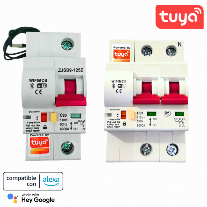 Interruptor de Energía Inteligente Breaker TUYA WIFI 80A 1 y 2Polos