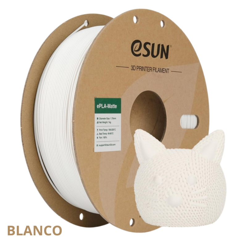 El Filamento PLA+ Matte eSUN 1.75 mm 1 kg es un material para impresión 3D fabricado a base de PLA mejorado con aditivos que le otorgan mayor resistencia mecánica y un acabado mate. Está diseñado para impresoras 3D de tecnología FDM, ofreciendo una superficie menos brillante y con líneas de capa menos visibles, ideal para piezas estéticas y funcionales.