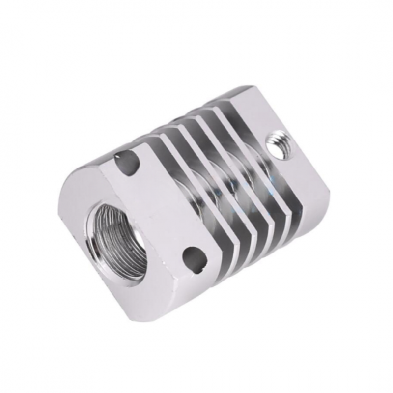 Es un pequeño disipador de aluminio que se monta en sistemas de extrusión de impresoras 3D para evitar que la parte superior del hotend se caliente excesivamente, mejorando la estabilidad térmica y previniendo problemas como atascos por fusión prematura del filamento.